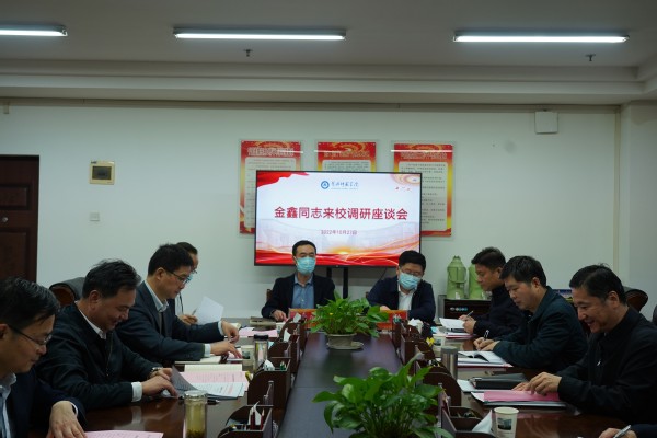 本网讯 10月27日下午,市委副书记、政法委书记、市委教育工作领导小组组长金鑫,市委副秘书长刘应文一行来校调研,传达学习贯彻党的二十大精神的相关要求,并协调解决学校发展中的具体问题。校党委书记陈向军、校党委副书记陈朝阳参加调研活动。