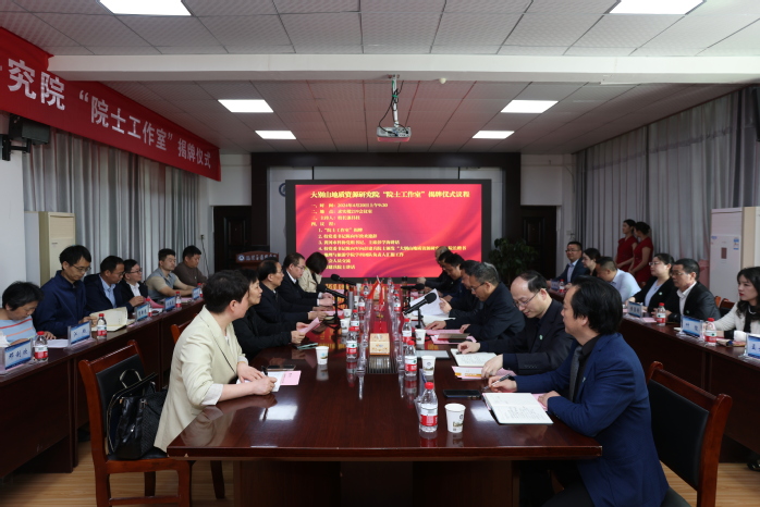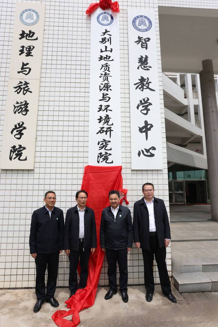 彭建兵、陈向军、漆昌柱和彭学海共同为大别山地质资源与环境研究院“院士工作室”揭牌。