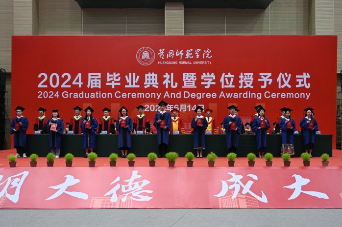 校学位评定委员会主席、校长漆昌柱与毕业生们分享了近年来学校的发展变化,他指出,奋进的黄师正以加速快跑的姿态勇担新使命、展现新作为、呈现新气象,向着“全省一流、全国知名”高水平师范大学的目标大踏步迈进。他寄语毕业生爱党报国、志存高远,做理想远大、信念坚定的有志者,涵养家国情怀,立鸿鹄志,自觉把个人小我融入祖国的大我、人民的大我之中,在报效祖国、奉献社会、服务人民中实现人生价值;勤奋刻苦、学无止境,做知行合一、本领过硬的有识者,始终保持学习的动力,把学习作为一种追求、一种境界、一种责任,让勤奋学习成为青春远航的不竭动力,以增长本领提升青春搏击的强大能量;敢为人先、追求卓越,做投身实践、干事创业的有为者,永葆黄师人敢闯敢拼的锐气、上下求索的执着,脚踏实地、积极进取,在科技创新、乡村振兴、社会服务等各领域各方面勇当排头兵和生力军,以青春之我、奋斗之我扛起强国建设、民族复兴伟业的青年使命;崇德修身,向上向善,做甘于奉献、引领风尚的有德者,把立德作为人生的必修课,明大德、守公德、严私德,坚守诚信、明辨是非、心存感恩、修身自律,不断追求止于至善的大境界,恪守心中真善美的精神家园,以实际行动向社会播撒更多美好与正能量。