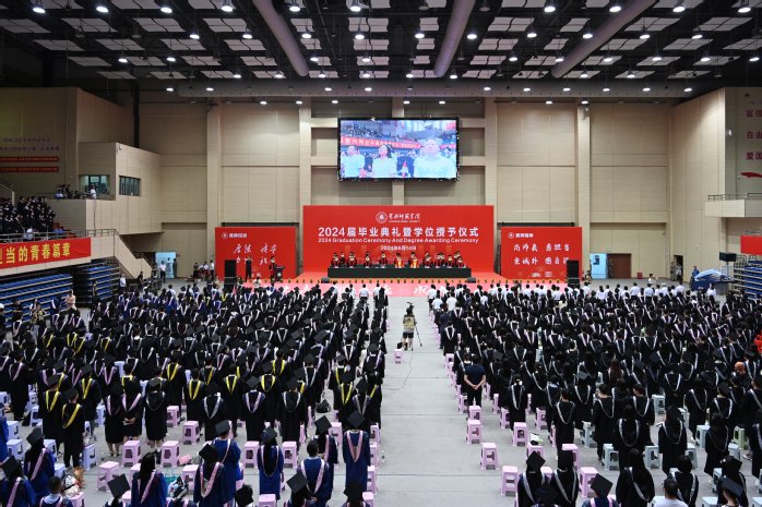 本网讯 数载励志求学,一朝鲲鹏展翅。614日上午,我校2024届毕业典礼暨学位授予仪式典礼通过线上线下相结合的方式在南校区体育运动中心主馆举行。4691名本科毕业生、230名研究生毕业生将从黄师启航,奔赴新征程。校党委书记陈向军,党委副书记、校长漆昌柱等全体校领导出席仪式。校党委副书记陈朝阳主持仪式。