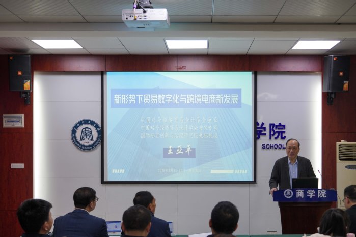 12日上午,宋文生主持专题报告会,王亚平为商学院师生作了题为《新形势下数字贸易与跨境电商新发展》的学术报告。王亚平从复杂严峻的国际经贸形势及应对、经济全球化与贸易数字化大趋势、新形势下的跨境电商新发展三个维度作了重点阐述,并总结了当前跨境电商发展存在区域市场化加速、独立站与去中心化生态崛起、社交电商与直播带货全球化、AI重构全链条效率等发展趋势。