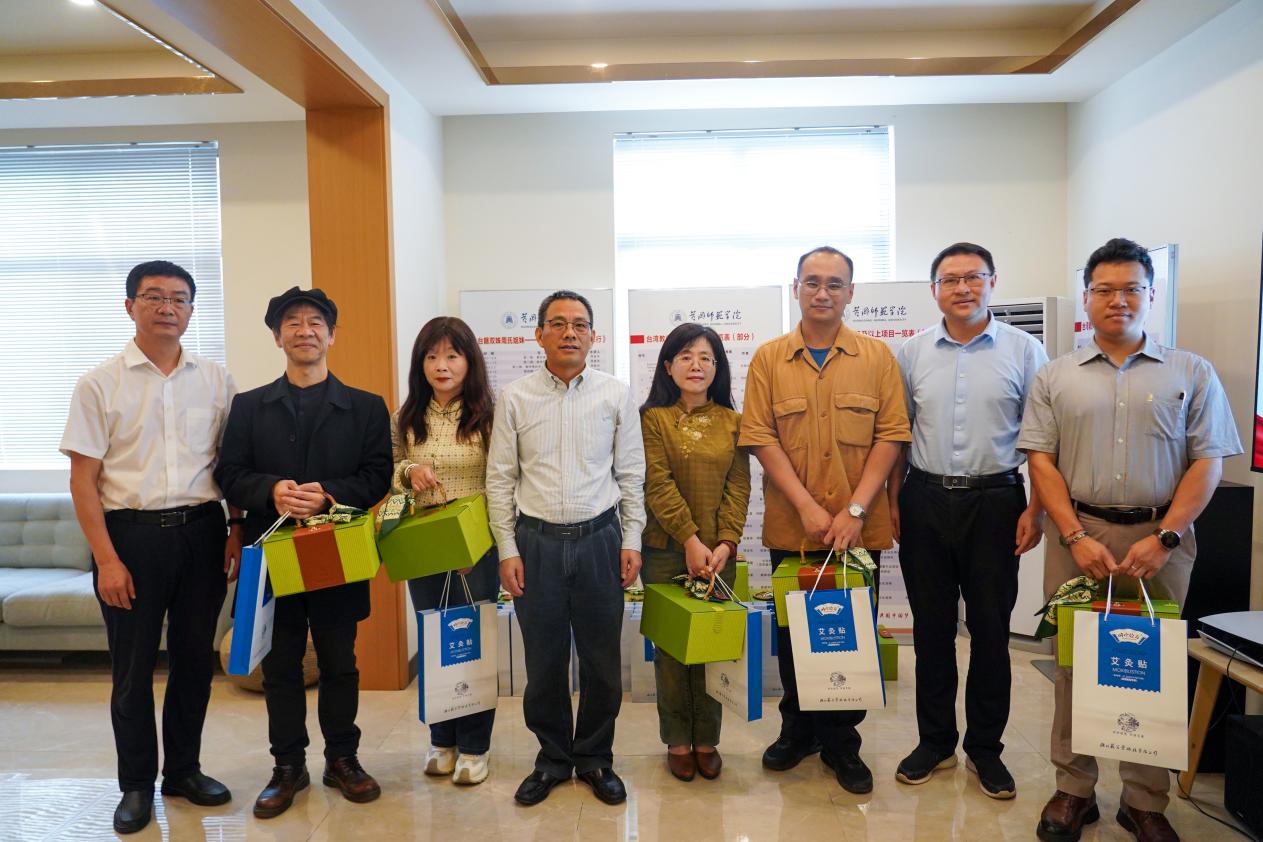 校领导为台湾教师发放了节日慰问品,并与台湾教师合影留念。