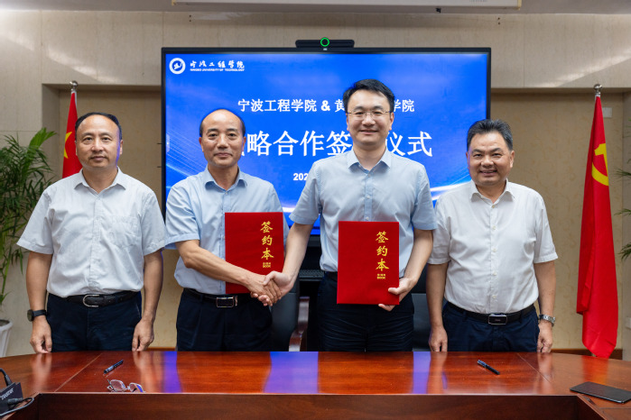 党委常委、副校长夏庆利,宁波工程学院党委委员、副校长张水潮分别代表双方签订战略合作框架协议。