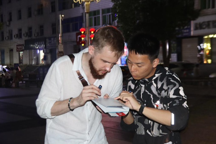 推普队进村镇景区推普:给外国友人讲解纠正普通话