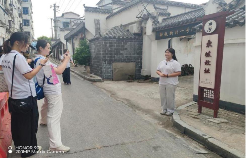 “不同于景区里的文物遗址,黄州很多东坡遗迹藏在市井里。” 团队成员、2024级电气专业学生吴超说。在定慧院小区,队员们在围墙外侧找到刻有“定惠院遗址”的石碑,石碑旁是居民晾晒的衣物、停放的自行车,这种“历史与生活交融”的场景,被队员们用镜头定格;在十三坡小巷,队员们跟着当地居民李大爷找到东坡旧居遗址——如今这里是一处居民小院,李大爷讲述“小时候听长辈说,这里曾是苏东坡住过的地方”,这些民间记忆被队员们收录进调研日志,成为文献资料的生动补充。
