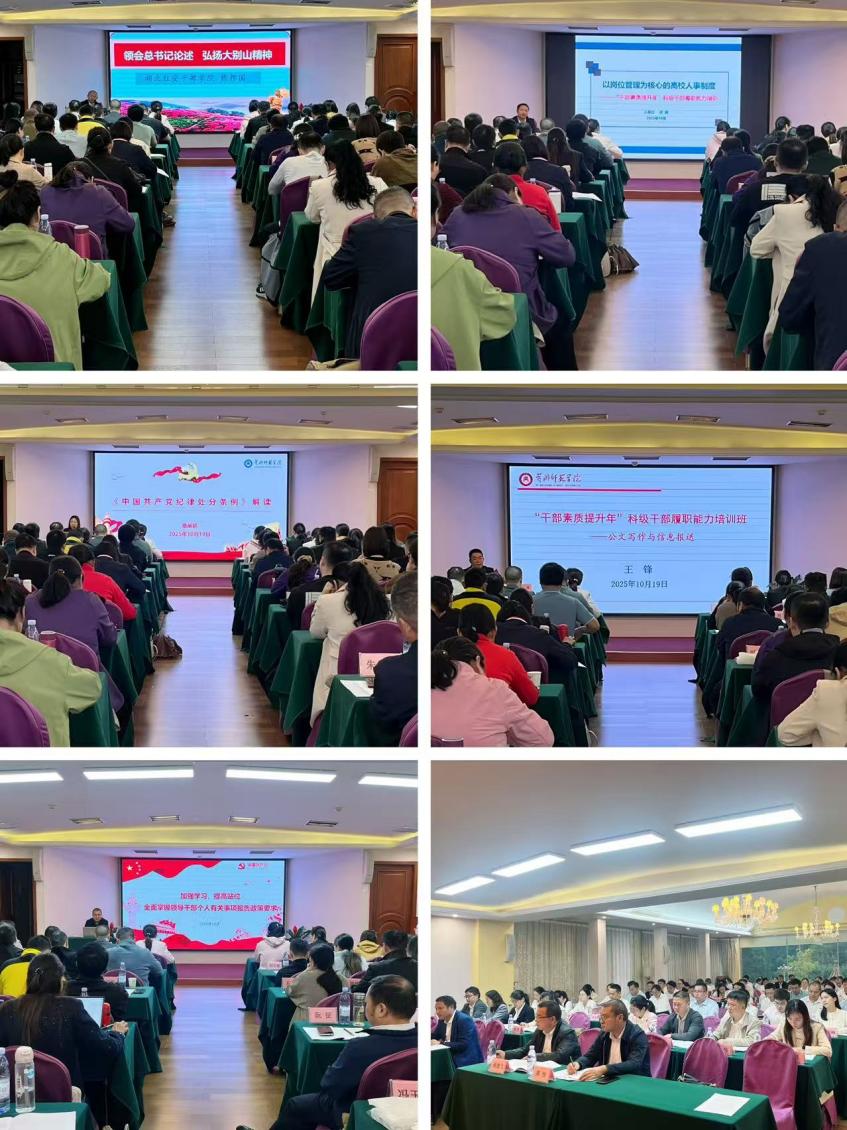 本网讯 为深入贯彻落实湖北省委“干部素质提升年”工作部署,锻造政治过硬、业务精湛、作风扎实的科级干部队伍,10月17日至20日,我校“干部素质提升年”科级干部履职能力培训班在湖北大别山革命传统教育基地顺利举办。本次培训为期4天,共开展了5场专题辅导、3场现场教学、1次交流研讨。学校2025年新提任科级干部参加培训。